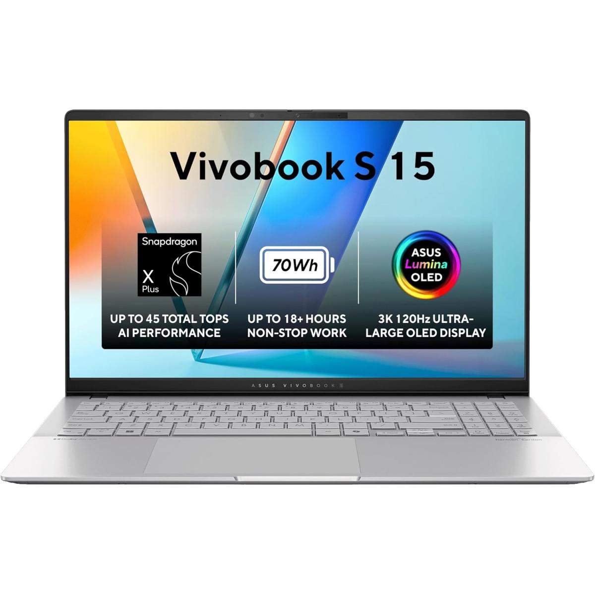 Your First Asus Copilot+ Pc Meet Your First Asus Copilot+ Pc — The Asus Vivobook S 15, A Sleek Ai Powered Laptop Designed For Smart Users. With The Efficient Power Of Its Snapdragon® X Elite Processor, Enjoy Up To 18 Hours*2 Of Seamless Produivity. The 3k 120 Hz Ultra Large Oled Display And Immersive Audio System Are Encased In A Premium All Metal 1.47 Cm Thin, 1.42 Kg Light*1 Body For Effortless Mobility. Featuring A Mood Setting Single Zone Rgb Keyboard, With A Dedicated Copilot Key*3 For Instant Ai Assistance, Revolutionize Your Work And Play. Welcome To An Innovative And Elegant Future, Where Ai Brings You To The Forefront, With No Compromises. Gfk And Npd Combined Retail Data In 2021 Q4~2024 Q1, Worldwide Market. Asus Copilot+ Pc Optimize Your Time, Effort, And Energy Windows 11 Home 1.47 Cm Thin And 1.42 Kg Light For Effortless Mobility*1 Up To Snapdragon® X Elite Processor Provides Up To 45 W Cpu Performance Up To 18+ Hours Non Stop Produivity And Entertainment*2 Experience The Perfe Sensory Feast With Lifelike Oled Visual And Audio Experiences Single Zone Rgb Keyboard And Enlarged Touchpad Show Your Vibe With Ease Full I/o Ports Usb4®, Usb 3.2 Gen 1 Type A, Hdmi 2.1 Tmds, Microsd Card Reader, Audio Jack Play Your First Asus Copilot+ Pc It’s Here! We’re Proud To Present The First Asus Copilot+ Pc — Asus Vivobook S 15. Powered By The Latest Ai Enabled Processors, This Pc Brings You A Next Level Ai Experience, With Enhanced Security, Speed, And Personalization. With Integrated Ai Engine To Accelerate Ai Computing, Copilot In Windows For Personalized Assistance, And A Suite Of Powerful Asus Ai Applications, Your Pc Is Now Your Ultimate Companion. Experience The Difference Easier, Faster, Smarter, And Smoother — Asus Copilot+ Pc Puts An Extraordinary Ai Experience At Your Fingertips, Now. Ai Experience Dedicated Ai Chip All Local Ai Processing With Up To 45 Tops Performance, Compatible With A Wide Range Of Isvs. The Fastest, Most Intelligent Windows Pcs Ever. Asus Ai Applications Empower All Aspes Of Your Daily Life With Asus Ai Applications. A New Ai Era Begins A Whole New Way Of Interaion With Your Pc Is Here. With Copilot+ Pc Experiences, You Can Accelerate Your Produivity And Creativity. Let The New Asus Copilot+ Pc Transform The Ordinary Into The Extraordinary, Making Every Day An Adventure Filled With Endless Possibilities. *the Model Shown Is For Reference Purposes Only. Aual Models May Differ. ** Prerelease Produ Shown, Subje To Change. Ai Experience Copilot In Windows Your Everyday Ai Companion Copilot In Windows Complements Your Capabilities And Creativity With Intelligent Assistance And Relevant Answers. Recall Recall Instantly Searching For A Document, Email Or Web Page On Your Pc Can Be Time Consuming. Now You Can Just Describe How You Remember Something And Recall Will Find It, Instantly.*20 Live Captions Conne With Live Captions When You Never Miss A Word, You Never Miss A Beat. Get Accurate Subtitles In Real Time With Automatic Live Captions.*21 Cocreator Create With Cocreator Everyone Has An Imagination And An Ability To Be An Artist. Light Your Spark With Cocreator.*22 Windows Studio Effes Engage Your Audiences With Windows Studio Effes Improve Lighting And Blur Distraions In The Background During Video Calls. When Presentation Matters, Turn On Windows Studio Effes. Automatic Super Resolution Better Graphics For All No Need To Compromise When It Comes To Graphics. Automatic Super Resolution Upscales Games In Real Time To Deliver High Definition, High Frame Rate Gaming.*23 Asus Ai, Always Incredible Asus Ai Applications Elevate Your Daily Routine With Unparalleled Convenience. Seamlessly Organize Your Multimedia Library With Ai Powered Categorization, Safeguard Your Privacy With Ai Assistance, And Experience Crystal Clear Audio With Smart Noise Cancelation. Embrace The Future Of Technology With Asus, Where Ai Enhances Every Aspe Of Your Life. Ai For Organizing Multimedia Storycube Is An Ai Powered Digital Asset Management Tool, Which Can Automatically Organize Your Photos And Videos. Ai For Security And Privacy Stay Focused With Ai Powered Asus Adaptive Dimming. It Adjusts Screen Brightness Based On Your Presence. Asus Adaptive Lock Keeps Your Space Secure And Saves Energy By Locking When You’re Away. Ai For The Clearest Audio Asus Ai Noise Cancelation Leverages A Massive Deep Learning Database To Reduce Background Noise In Meetings And Calls, For Crystal Clear Audio. Slim. Strong. Sophisticated. Asus Vivobook S 15 Stands Out For Its Ultra Slim And Lightweight Design, Redefining Elegance With Its Minimalist Aesthetics. The Premium Cnc Engraved Logo Adds A Touch Of Class, While The Versatile Tapered Unibody Design Ensures Solidity And Stability. Experience Seamless Portability And Stunning Looks Without Sacrificing Power. Thin & Light Design Starting At 1.47 Cm Thin 1.42 Kg Lightweight*1 Premium All Metal Body Design Lay Flat Hinge Game Changing Ai Powered Performance. Asus Vivobook S 15 Combines Stunning Looks With Powerful Performance. Equipped With The Snapdragon® X Elite Processor For Responsive Multitasking, It Guarantees A Seamless Experience For Produivity, Creativity, And Entertainment Without Compromising Battery Life. With Up To 75 Total Tops*4 For Unmatched Ai Performance And Lightning Fast 32 Gb 8448 Mhz Ldppr5x Memory*5, Every Task Runs Smoothly. Prepare For The Life Changing Power Of The Asus Vivobook S 15. Performance Asus Vivobook S 15 Combines Stunning Looks With Powerful Performance. Equipped With The Snapdragon® X Elite Processor For Responsive Multitasking, It Guarantees A Seamless Experience For Produivity, Creativity, And Entertainment Without Compromising Battery Life. With Up To 75 Total Tops4 For Unmatched Ai Performance And Lightning Fast 32 Gb 8400 Mhz Ldppr5x Memory*5, Every Task Runs Smoothly. Prepare For The Life Changing Power Of The Asus Vivobook S 15. Windows 11 Home Up To Snapdragon® X Elite Processor Qualcomm® Ai En