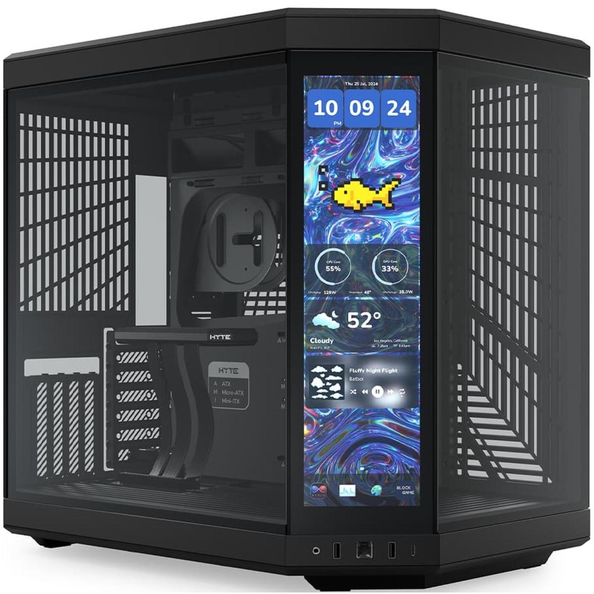 Product Features Mesmerizing 14.9" Integrated IPS Touchscreen At a 682 x 2560 (2.5K) resolution and 60Hz refresh rate, this capacitive IPS touchscreen delivers an insanely crisp and buttery smooth visual experience with 10-point multi-touch capability, unlocking a magnitude of possibilities and extensive screen customization powered by HYTE Nexus software. Our bigger, brighter, 3rd generation panel features a larger 14.9" display with a 43% higher brightness for a more immersive user experience. All in a single package integrated into the case chassis structure, pioneering meaningful digital interaction with the best display ever in a case. Massive 4 Slot Vertical Graphics Y70 grows GPU support to 4 slots with additional airflow space between the edge of the card and the glass. This means you can fit even the largest and most powerful of graphics cards into your build with ease. Additionally, the cold floor cooling down below can house up to a trio of 120mm or duo of 140mm fans up to 32mm thick to direct fresh airflow straight into the GPU. Included Luxury PCIE 4.0 Riser Cable Included with the case is a luxury PCIE 4.0 x 16 riser with a color-matched canopy for uninterrupted visual flow that'll make for a painless GPU installation and build process. It also allows for a plethora of half-height PCIE cards to sit behind the throne of the vertical graphics. Ginormous Cooling Capacity A spacious interior makes room for up to a 360mm long & 125mm thick radiator on the side and adjustable top bracket that can house another 360mm radiator up to 68mm thick up above. Working together with the cold floor cooling at the bottom and spot for an additional fan at the rear of the case, Y70 has a total capacity of 10 fans in a fully populated chassis. With over 180mm of clearance to the side glass, air and water cooling enthusiasts alike will appreciate the flexibility afforded to them by the chassis to create the most robust cooling configurations possible. Unified Modern Aesthetic With 4 unique colorways, Y70 puts your build front and center with a beautifully crafted 3-piece panoramic glass which serves as a window into the heart of your PC. The dual chamber interior layout keeps the front looking great while giving you plenty of space to manage cables in the back, especially with the help of our seamless L-shaped molded rubber grommet, meticulously placed cable routing channels & tie-down points, and reusable Velcro straps. All easily accessible with tool-less top and side panels alongside floating storage sleds that eject from the rear of the case for intuitive drive maintenance. Case Specifecation Case Form Factor Mid-Tower Material Tempered Glass Steel Motherboard supporting ITX mATX ATX EATX Expansion Slots 7 half + 4 full height Internal 2.5" Bays 2x 3.5" HDD or 4x 2.5" SSD Internal 3.5" Bays 2x 3.5" HDD or 4x 2.5" SSD Fans Mount *** No Fans Included •Fan Support: Side: 3x 120 mm / 2x 140 mm Top: 3x 120 mm / 2x 140 mm Rear: 1x 120/140 mm Bottom: 3x 120 mm / 2x 140 mm @ 32 mm thick •Radiator Support: Side: -280 @ 125 mm thick Top: -280 @ 68 mm thick Rear: 1x 120/140 mm I/O Interface 2x USB-A 3.2 Gen 1 1x USB-C 3.2 Gen 2 Case specification link https://hyte.com/y70touch?srsltid=AfmBOoogKBAOFarmr1N9J9xkyfI6xRIAzIaodarwcpemf-2k6OlqZAAr