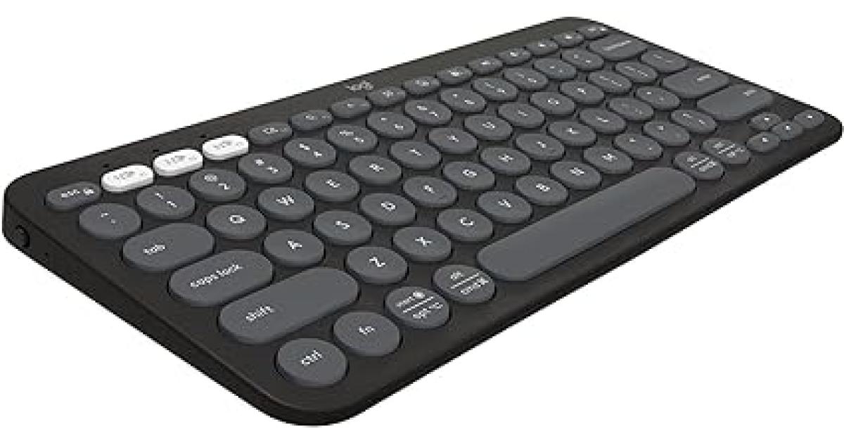 The Logitech K380s Pebble Keys 2 Slim Bluetooth Keyboard in Graphite is a compact and stylish keyboard designed for versatility and portability. Here are some key features: