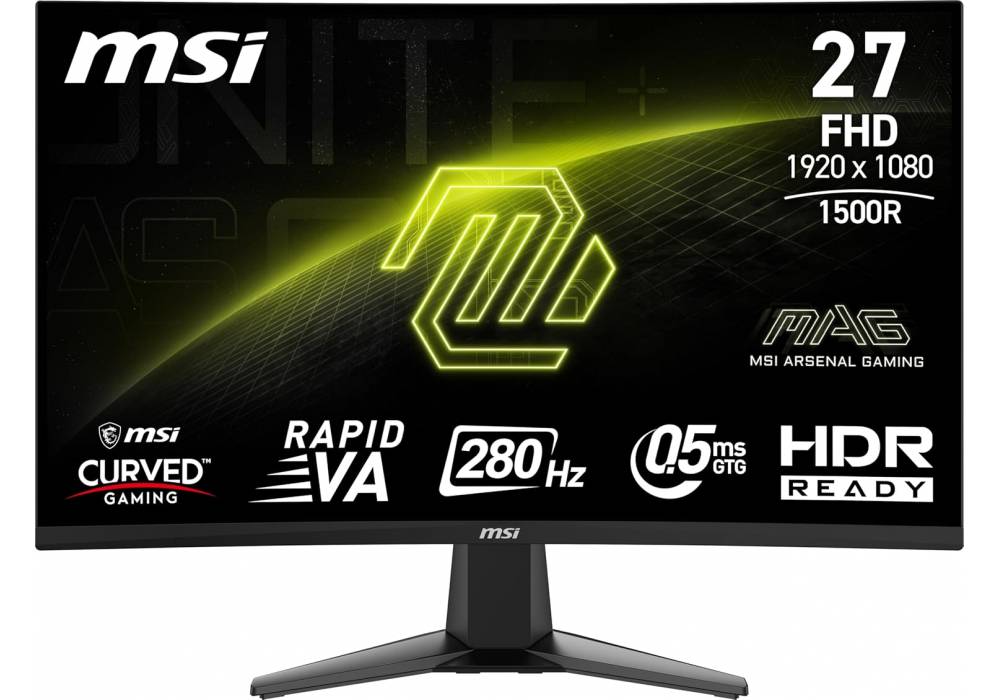 Equipped with an immersive, curved 27" FHD (1920 x 1080) Rapid VA panel (1500R) with 280 Hz refresh rate and 0.5ms (GtG, Min.) response time, the MAG 276CXF curved gaming monitor provides a competitive edge over most opponents. The MAG 276CXF features Adaptive Sync technology, which matches the display & GPU refresh rates for ultra-smooth gameplay, and a tilt-adjustable stand.