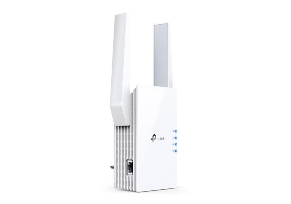 The AX1800 range extender expands your router’s WiFi signal using specially-designed high-gain antennas with dual-band speeds of up to 1.8 Gbps (1800 Mbps - 5GHz AX and 2.4Ghz AC) for 4K/HD streaming and endless browsing on your laptops, gaming consoles, smartphones, and more. [1] [2]