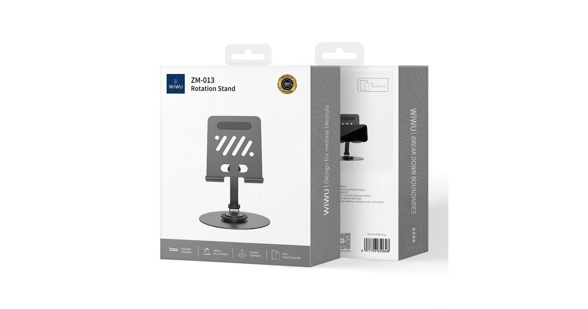 The WiWU ZM-013 360° Rotatable Metal Phone Stand delivers premium flexibility, strength, and elegance — perfect for both smartphones and tablets up to 12.9 inches.