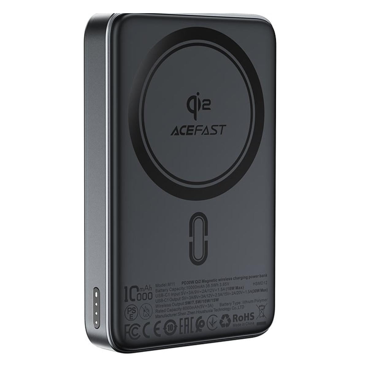 Title: Acefast M11 10000mah Qi2 15w Magnetic Wireless Charging Power Bank Fast Charging For Iphone 16/15 Usb C Pd30w Extra Battery Travel Black