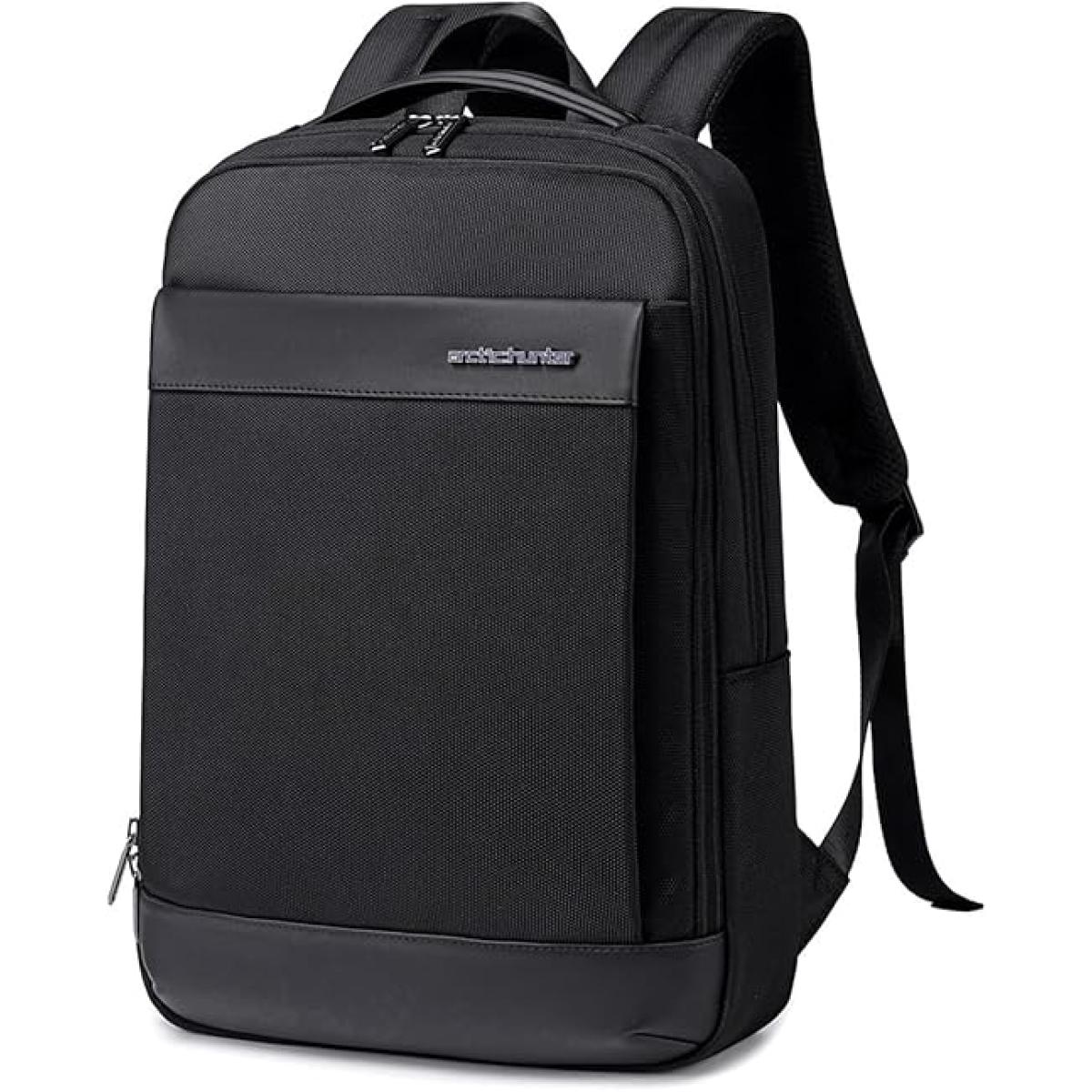 About this item Lightweight and slim backpack: This is an exquisite and simple lightweight business backpack suitable for daily use, allowing you to carry daily items easily and travel easily, suitable for men and women. Note-This backpack is a lightweight backpack and cannot carry many items, please be careful. Laptop & iPad Main Pocket: The main pocket of the Arctic Hunter backpack is designed to be spacious(H-43cm*W-8cm*L-30cm/11L), easily accommodating a 15.6-inch laptop and a 10.9-inch iPad. Whether you're at work or at school, this main pocket will securely protect your electronic devices, allowing you to enjoy productive work and play anytime, anywhere. Businessman's Must Have : The front pocket is smartly designed with multiple pockets inside for easy storage of stationery, pocket notebooks, wallets and other small items. In addition, there is a removable key zipper closure that allows you to find your keys anywhere, so you no longer have to rummage through your entire backpack to find them. The design of this front pocket makes your items well organized and easily accessible. Convenience for your travel: The back pad and straps of the backpack feature a honeycomb breathable design to ensure airflow and keep your back cool and dry. This design effectively reduces back sweat and discomfort, making you feel comfortable and relaxed when using the backpack for long periods of time. In addition, the shoulder straps are equipped with eyeglass cord straps, allowing you to conveniently store and remove your eyeglasses without the need for an additional eyeglass case. High Quality Material: The fabric of the Arctic Hunter backpack is made of durable polyester for excellent durability and water resistance. The interior is lined with a mountain-grade polyester lining to provide extra protection for your belongings. The computer and iPad compartments, on the other hand, are lined with EVA velvet, providing a soft texture and effective cushioning to ensure your electronic devices are protected from bumps and damage.