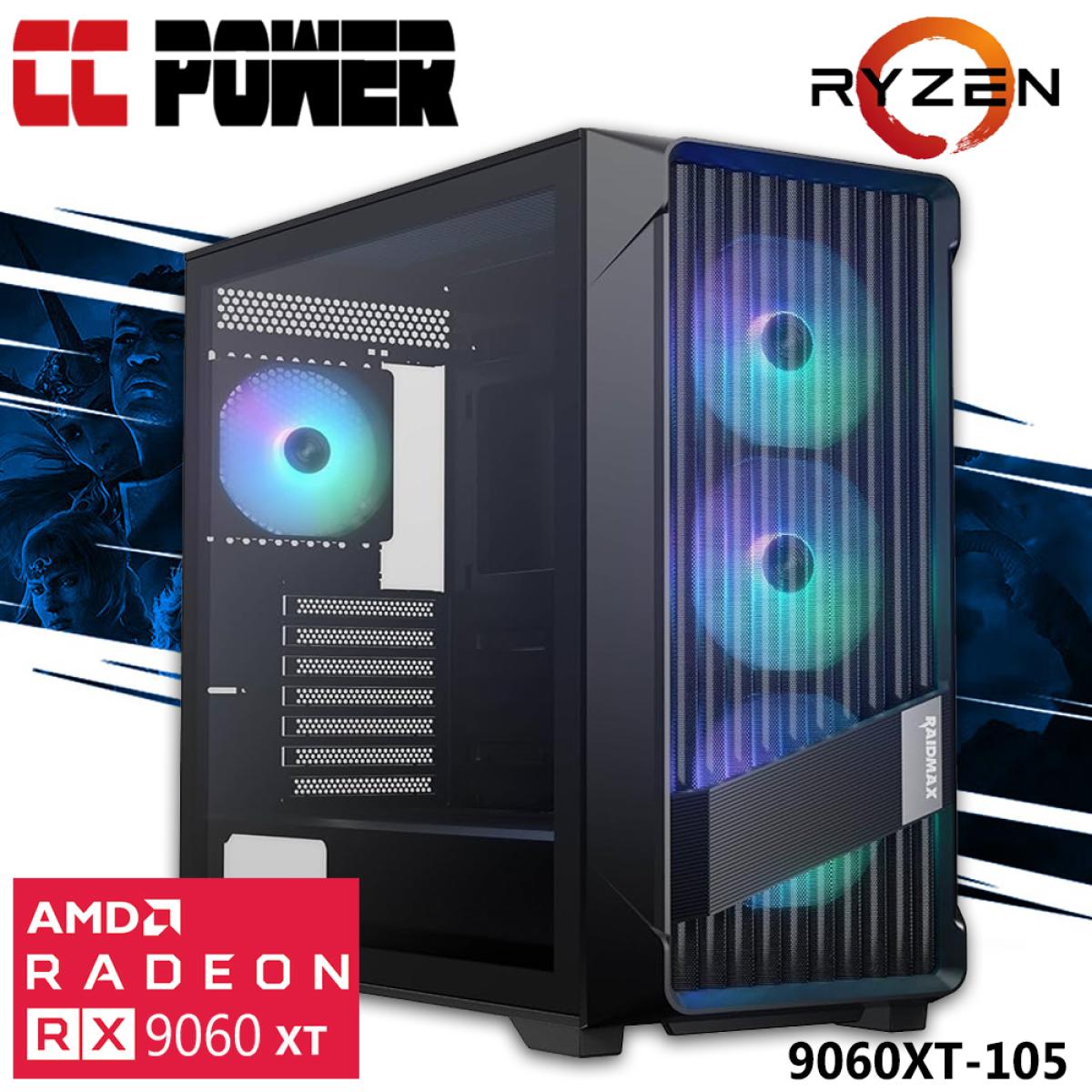 Cc Power 9060xt 105 Gaming Pc New 9gen Amd Ryzen 9 9900x 12 Cores W/ Amd Radeon Rx 9060 Xt 16gb Ddr6 & Advanced Air Cooler