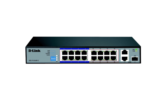 D Link Des F1016p E 16 Port 10/100 Long Range Poe+ Surveillance Switch