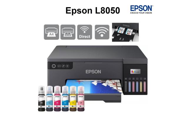 With its large capacity 6-color ink tank using 70ml ink bottles, the L8050 is chara erized by its low cost per print, with the included inks printing up to 1,500 10-size color photos. x 15 cm/2,600 black pages, 5,400 color pages 1 .