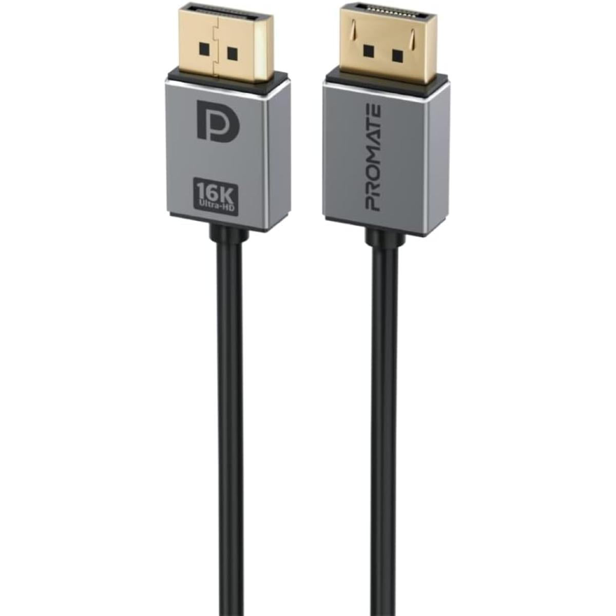 Promate Displayport 2.0 Cable, Premium Ultra Hd 16k@60hz Video Display Cord With 80gbps Bandwidth Transmission, Gold Plated Conneors, 2m Super Slim Cable Black - CompuMe