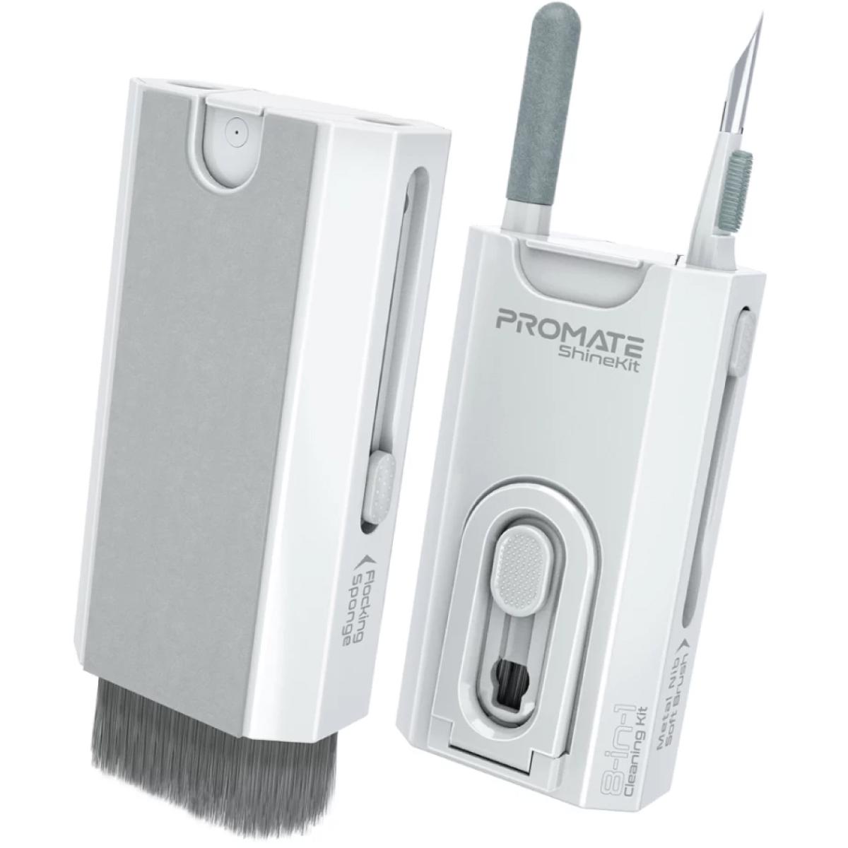Promate Shinekit 8 In 1 Eleronic Cleaner High Density Brush Flocking Sponge W/ Removable Fiber Cloth - CompuMe