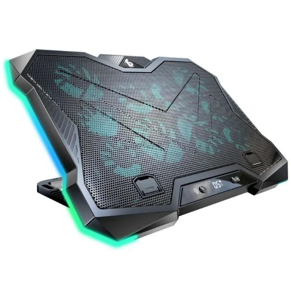 RTAKO LZ-D11 Gaming Laptop Cooler 10 Fans Foldable Adjustable Notebook Stand Heat Dissipation Holder for 12-18'' Cooling Pad W/ RGB Light - Black