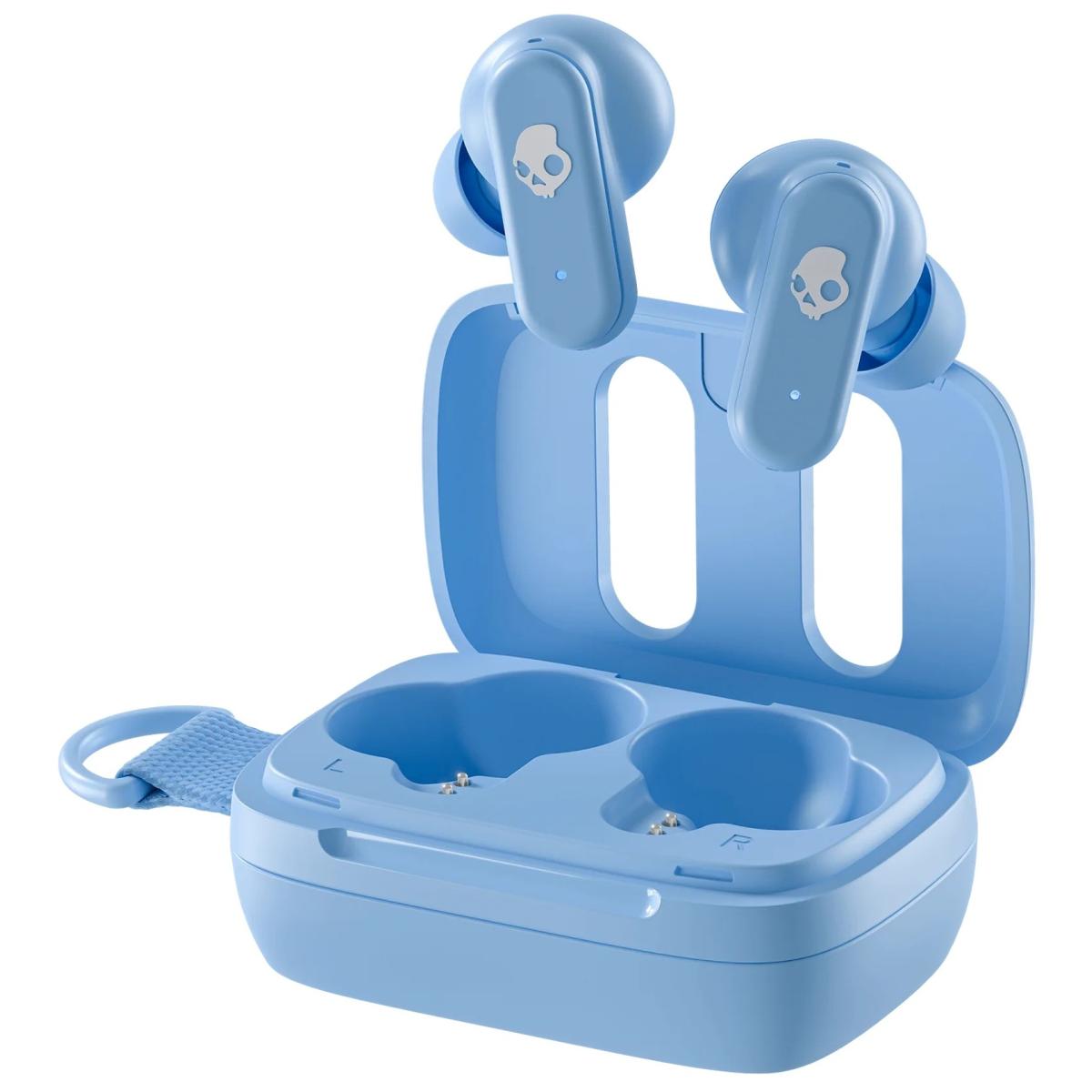Skullcandy Dime 3 Wireless Earbuds, Bluetooth Headphones, Noise Isolating Fit, Up To 20 Hours Battery, Microphone For Iphone Android, Easy Carry With Integrated Lanyard Preppy Blue