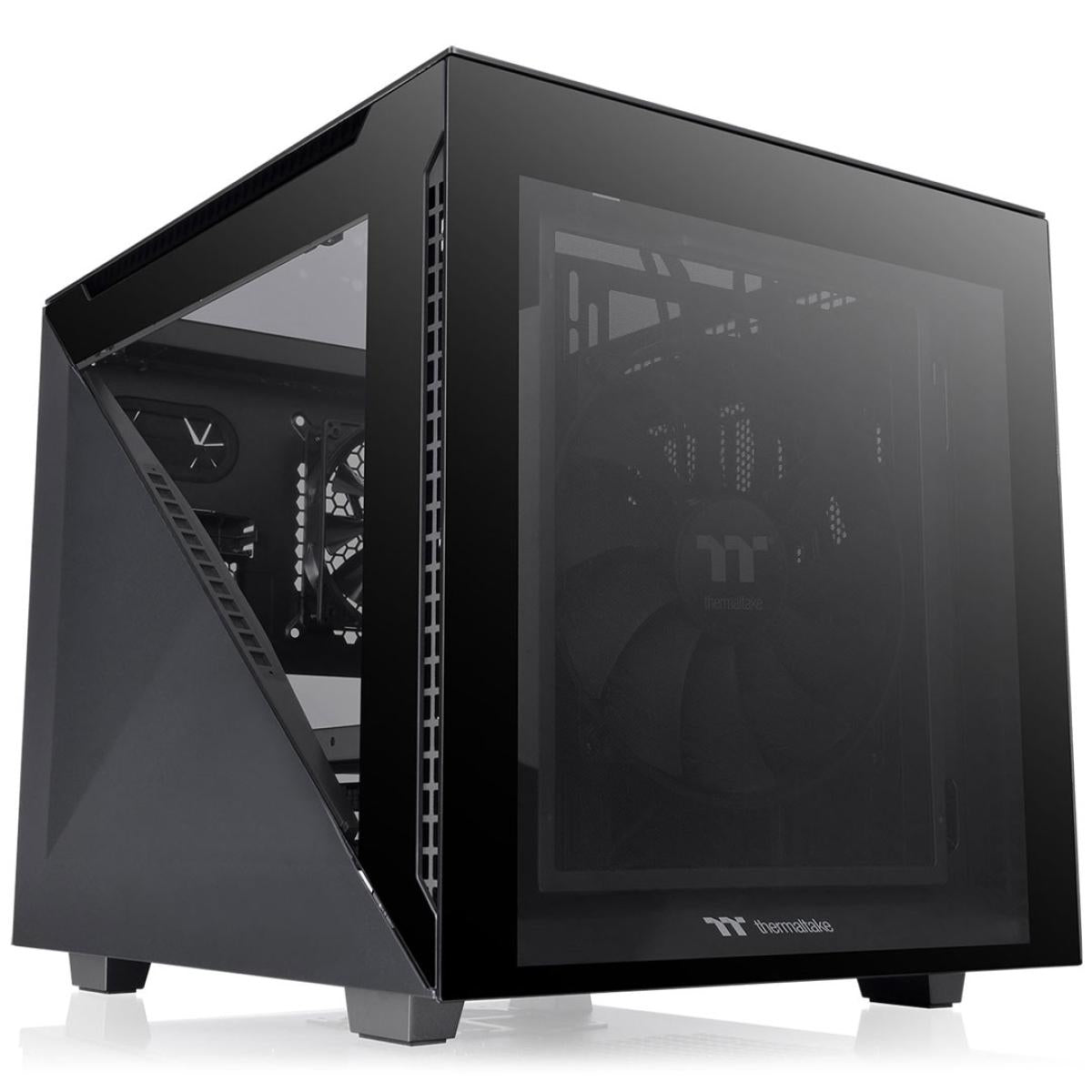 Divider 200 Tg Micro Atx Chassis * The Image Is For Reference Only. Tt Premium Avant Grade Style Side Panels With Tempered Glass Windows The Exceptional Feature Of The Divider 200 Tg Is The Two Symmetrical Triangular Pieces Comprised Of A Steel Panel And A Tempered Glass Window On The Left Side. On The Right Side, The Two Triangular Steel Panels Are Designed With A Large Venting Mechanism For Air Intake Or Exhaust Depending On The User’s Preference When Building A Pc. All Panels Are Tool Free And Easy To Remove. The Divider 200 Tg Comes With Three Sturdy 3mm Tempered Glass Windows At The Front, On The Top, And The Left Side, Offering A Clear View Of Components Inside. Tempered Glass Windows Are Thicker And More Scratch Resistant Compared To Standard Acrylic, Ultimatley Providing A Robust And Sturdy Struure For Your Components To Be Housed In. Excellent Dust Filtration The Divider 200 Tg Has Well Designed Removal Magnetic Fan Filters On The Right Side And Inner Bottom Side. At The Front And Bottom, The Removable Filters Provide Excellent Dust Proteion And Dirt Reduion, Ensuring A Dust Free Environment. * The Image Is For Reference Only. Air Intake And Exhaust The Cooling Performance Of The Divider 200 Tg Is Admirable. The Air Vents On The Two Sides Of The Front And Top Tempered Glass, And The Vent Between Two Triangular Pieces Of Tempered Glass And Steel Panels On The Left Side Allow Optimal Air Intake. Cooling Exhausts Are Located At The Rear Of The Case. On The Right Side, The Two Triangular Steel Panels Are Designed With A Large Venting Mechanism For Air Intake Or Exhaust Depending On The User’s Overall Pc Layout Design. * The Image Is For Reference Only. Idle And Full Load Temperature To Let Our Customers Better Understand The Thermal Performance Of The Divider 200 Tg Micro Atx Case, We Ran A Test System At Idle And Full Load. We Used Aida64 Extreme Portable And Furmark Asus Rog Edition Both Running At The Same Time For 30 Minutes, And The Thermal Images Were Taken With Testo 885 2 Thermal Imaging Camera. Specification Motherboard Asus Rog Maximus Xi Gene Cpu Intel® Core™ I5 9600k (tdp 95w) Gpu Msi Geforce Rtx™ 3090 Ventus 3x 24g Oc Ram Floe Rc240 Cpu & Memory Aio Liquid Cooler (four Sticks Of Ddr4 3200 8g) Psu Toughpower Gf2 Argb 650w Cpu Cooler Floe Rc240 Cpu & Memory Aio Liquid Cooler Fans Pure Argb 120mm Fans Up To 4 (front X 3, Rear X 1) Software Aida64 Extreme Portable, Furmark Asus Rog Edition Full Load 30 Min Camara Testo 885 2 Thermal Imaging Camera Idle Full Load Excellent Hardware Support & Cooling Solution The Divider 200 Tg Has Excellent Hardware Expansion. It Can Support A Cpu Cooler With A Maximum Height Of 185mm, Vga With Maximum Length Of 340mm (without Radiator), A Power Supply With A Length Of Up To 200mm (without Bottom Fan), Total Of Three 3.5” Hdds And Three 2.5” Ssds Or A Total Of Six 2.5” Ssds. When It Comes To The Cooling Solution, The Divider 200 Tg Is Comes With One Preinsalled 200mm Standard Front Fan For Cold Air Intake And One 120mm Standard Rear For Hot Air Extraion. The Case Can Hold Up Two 140mm Fans At The Front And Two 140mm Fans On The Right. Moreover, The Divider 200 Tg Is Optimized For Air Cooling And Advanced Aio Liquid Cooling Components. It Can Support Aio 280mm At The Front And On The Right. Dimensions Psu Hdd 1 Hdd 2 Fan Capacity Radiator Capacity Vga Length Limitation 310mm (with 27mm Radiator) Length Limitation 340mm (without Radiator) Cpu Cooler Max Height 185mm Motherboard Micro Atx, Mini Itx Handy I/o Ports Two 3.0 Usb And One Usb 3.2 (gen 2) Type C Ports Are Placed On The Top Panel To Grant Dire Access When Needed. Dmd: Dismantlable Modular Design Strip Your Case Down To The Bones And Install Elements When And As You Need Them With Our Modular Design. The Divider 200 Tg Features Modular Panels, Racks, Brackets, And Pre Designed Mounting Arrays. No More Unreachable Screw Corners Or Gaps, Installation Can Be A Breeze With Our Dismantlable Modular Design. All In One Compatibility List All In One Compatibility List 120 Series 240 Series 360 Series 140 Series 280 Series Front Right Rear Fan Support List Fan Compatibility List 120mm 140mm 200mm Front Right Rear Bottom Thermaltake Compatible Fan 120mm 140mm 200mm Pure Fan Series Riing Fan Series Xigmatek Veor 1050w 80+ Silver Semi Modular Intel Core I7 7740x X Series Kaby Lake Up To 4.3ghz 8mb 320 149 Intel Core I7 7820x 8 Core Up To 4.3 Ghz 11 Mb Cache 525 179 Deepcool Rgb 350 Colour Led Strip Magnetic Lighting Kit With Remote Ek Supremacy Evo Full Nickel Cpu Water Block Ek Fc1080 Gtx Ti Strix Nickel Gpu Water Block 129 Please To Review